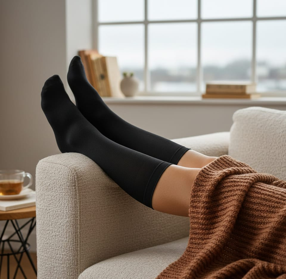 Lindra dina ben och eliminera svullnad med vår graderade kompression. Återfå en omedelbar lätthetskänsla och total komfort, i varje steg under dagen.